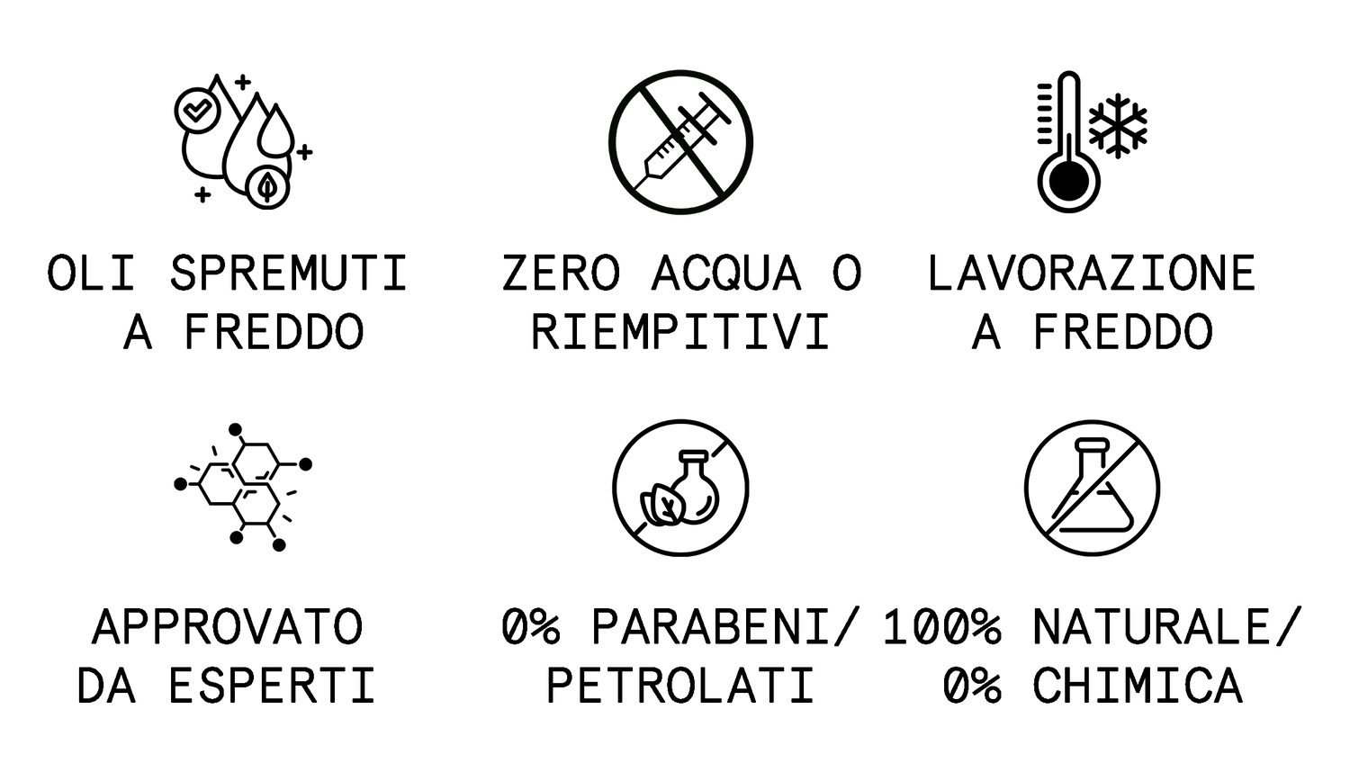 | 0% ACQUA, RIEMPITIVI, SILICONI, PARABENI | ||